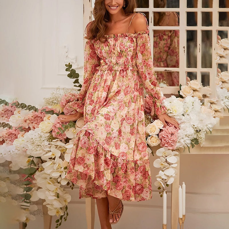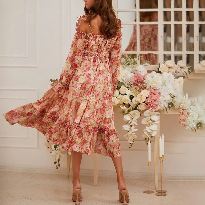 La silhouette de cette Robe à Fleurs pour Femme est exceptionnelle, nous craquons pour son allure fluide et légère. Elle est dotée de longues manches et d’un col bateau qui laisse deviner les épaules ! En outre, cette Robe à Fleurs pour Femme à l’esprit romantique bénéficie d’une coupe mi-longue évasée avec volant, offrant un confort incomparable !