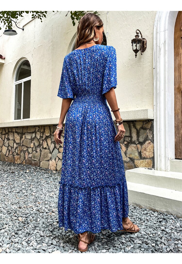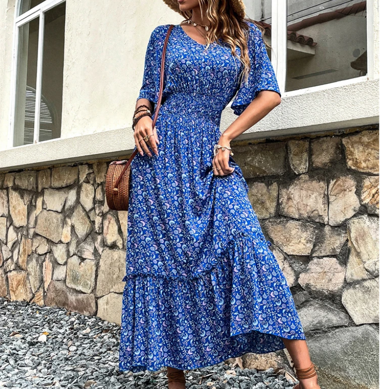Séduisez-vous avec cette Robe Longue Fleurie Bleue !